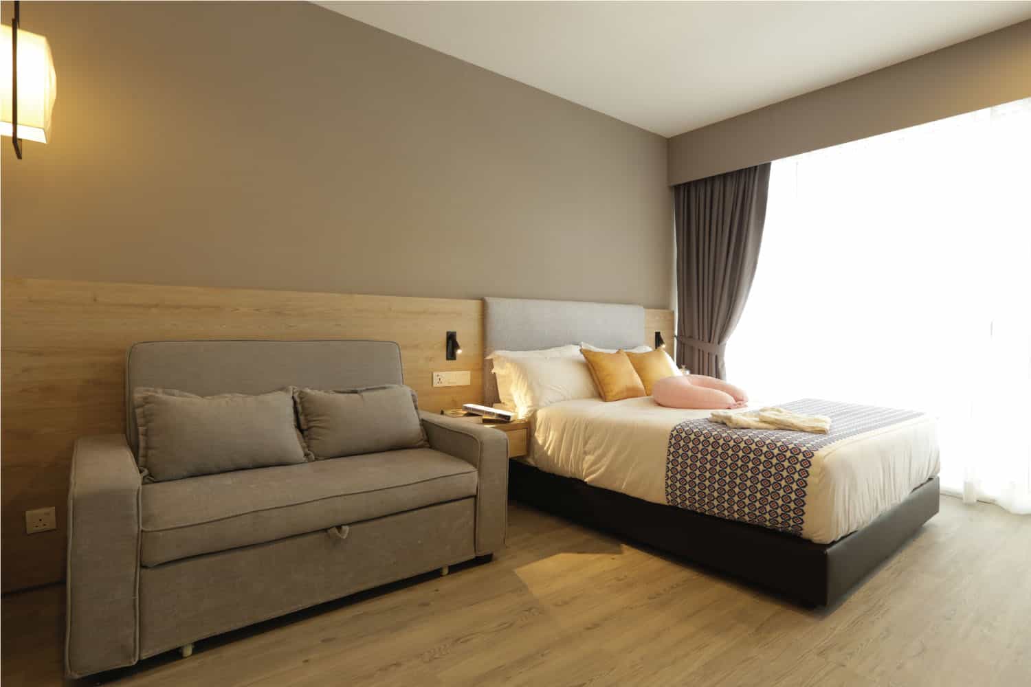 Our private, en-suite rooms feature smooth wooden panels and floors, bringing a touch of nature and tranquillity indoors. With large floor-length windows, enjoy the natural sunlight streaming into your spacious room as you sit back and watch a movie on our Smart TV or enjoy a leisurely meal. Our VIP room balcony with bamboo finishing provides you the unique experience of looking out at the hectic world, while being pampered and well-rested inside our confinement centre.